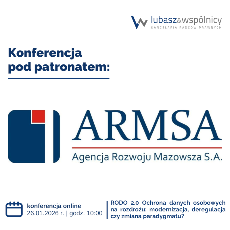 Bezpłatna rejestracja pod linkiem: https://www.webinary.lubasziwspolnicy.pl/webinary/rodo-2-0-ochrona-danych-osobowych-na-rozdrozu-modernizacja-deregulacja-czy-zmiana-paradygmatu